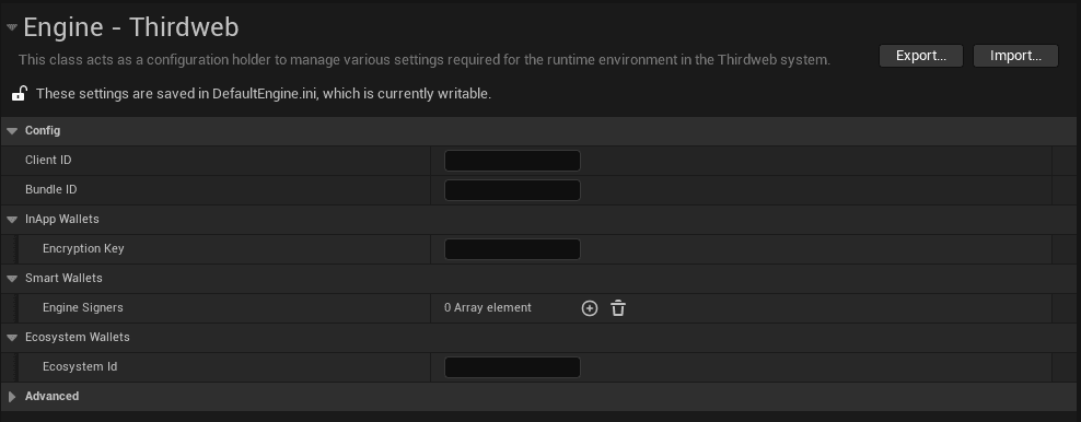 Edit > Project Settings > Engine > Thirdweband filling in the required fields.